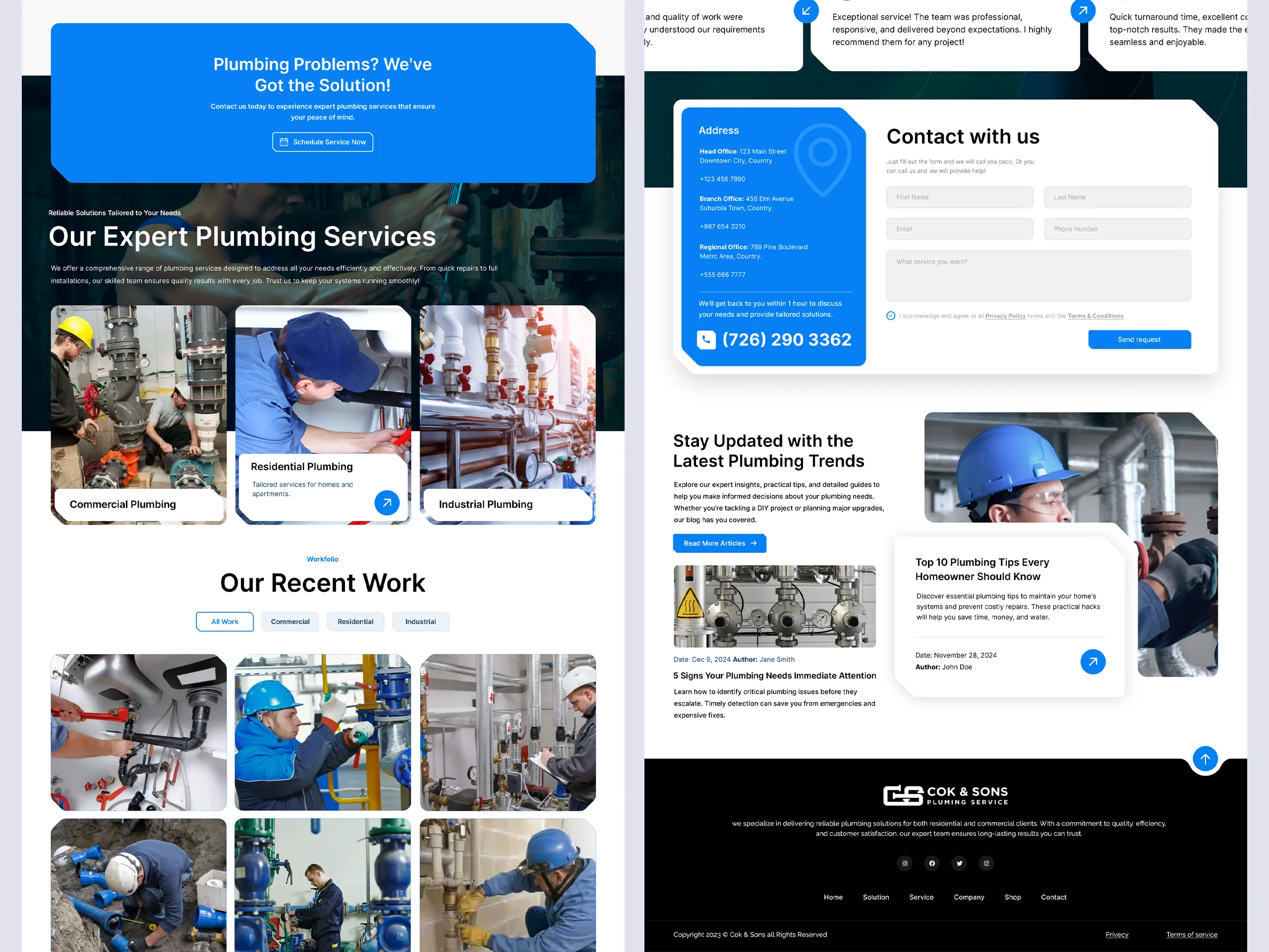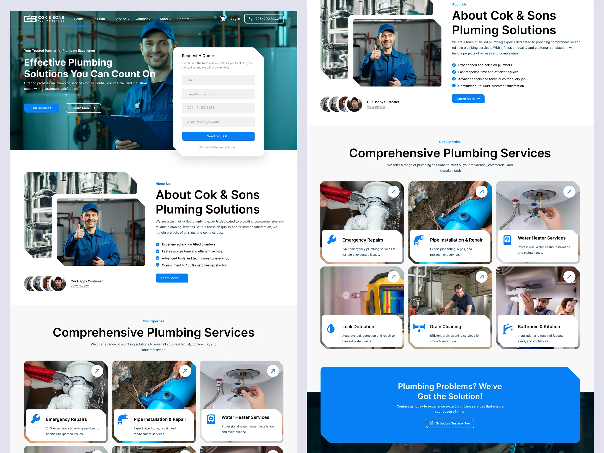 Cok & Sons – Plumbing Service is a modern plumbing company providing residential, commercial, and industrial plumbing solutions with a strong focus on reliability, efficiency, and customer trust. The project initially began as a complete website UI/UX design in Figma, where the objective was to create a high-converting, service-focused digital presence that communicates professionalism and technical expertise. During the design process, the client recognized the need for a stronger brand identity and requested a custom logo and structured brand system. The final scope evolved into a full brand identity and website design project, including logo design, typography selection, color guidelines, and a modern service-driven website interface optimized for clarity, lead generation, and long-term scalability.