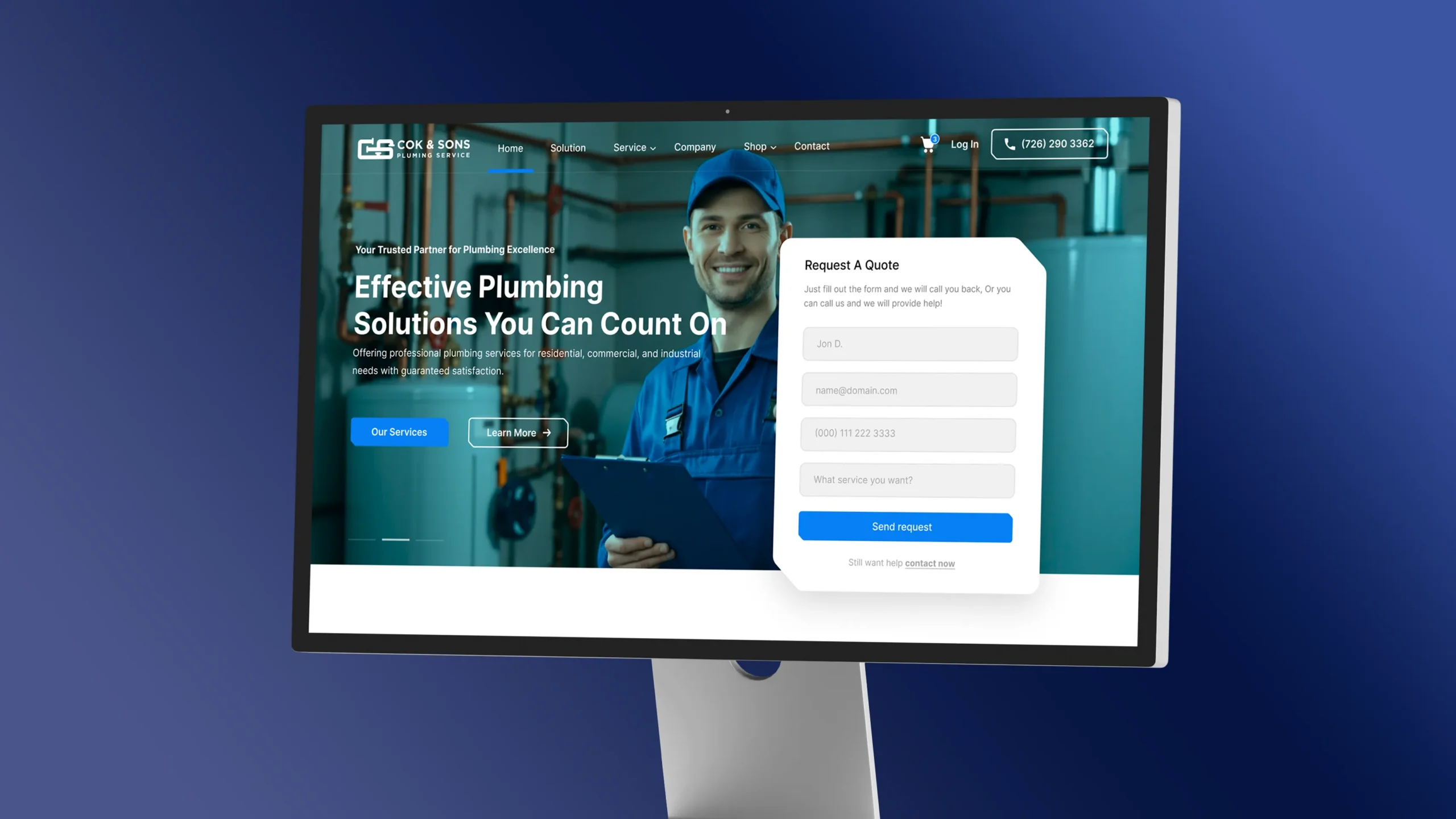 The solution was to build a refined, modern identity system combined with a structured, conversion-focused web design. The logo was designed with a clean, geometric monogram that reflects stability, structure, and professionalism while remaining scalable for digital and print applications. A strong blue-based color system was selected to communicate trust, dependability, and technical expertise, supported by clear typography that enhances readability and authority. The website was strategically designed with a strong hero section, clear service categorization, testimonial integration, and multiple call-to-action placements to maximize lead generation. Every section was carefully structured to guide users logically from awareness to inquiry, creating a professional digital presence that positions Cok & Sons as a reliable, modern, and customer-focused plumbing service provider.