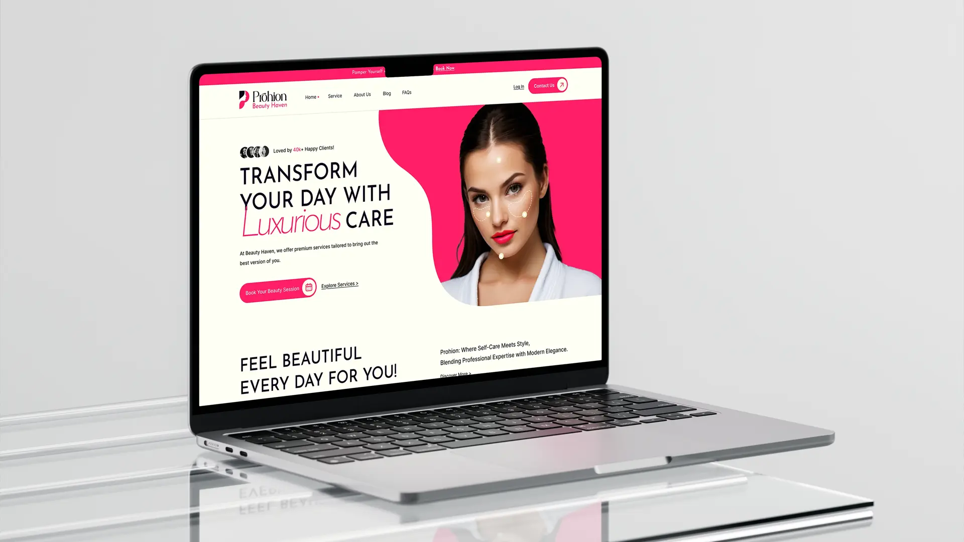 The Prohion Beauty Haven project focused on crafting a refined and confident brand identity supported by a high-converting website experience. The objective was to position Prohion as a premium yet approachable beauty destination, blending elegance with modern clarity. Rather than relying on common beauty-industry clichés, the brand was built around bold typography, strategic contrast, and a clean digital structure that guides users effortlessly toward booking services. Every visual and UX decision was made to elevate trust, communicate professionalism, and create an aspirational but accessible customer experience across desktop and mobile platforms.