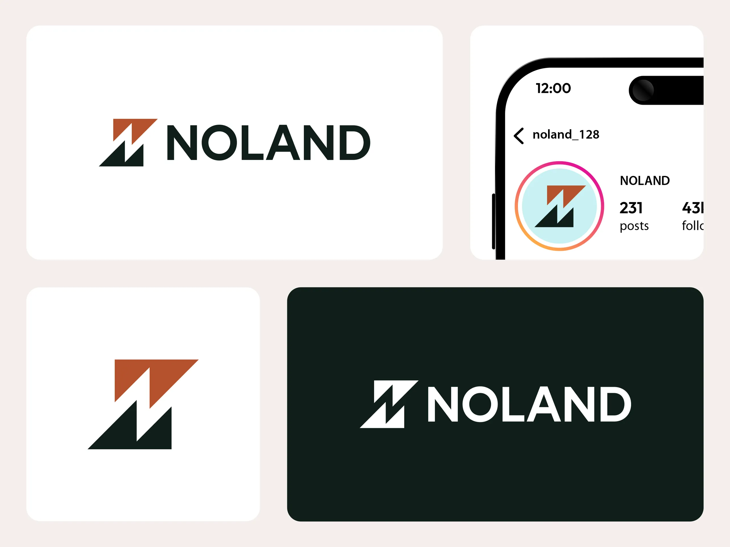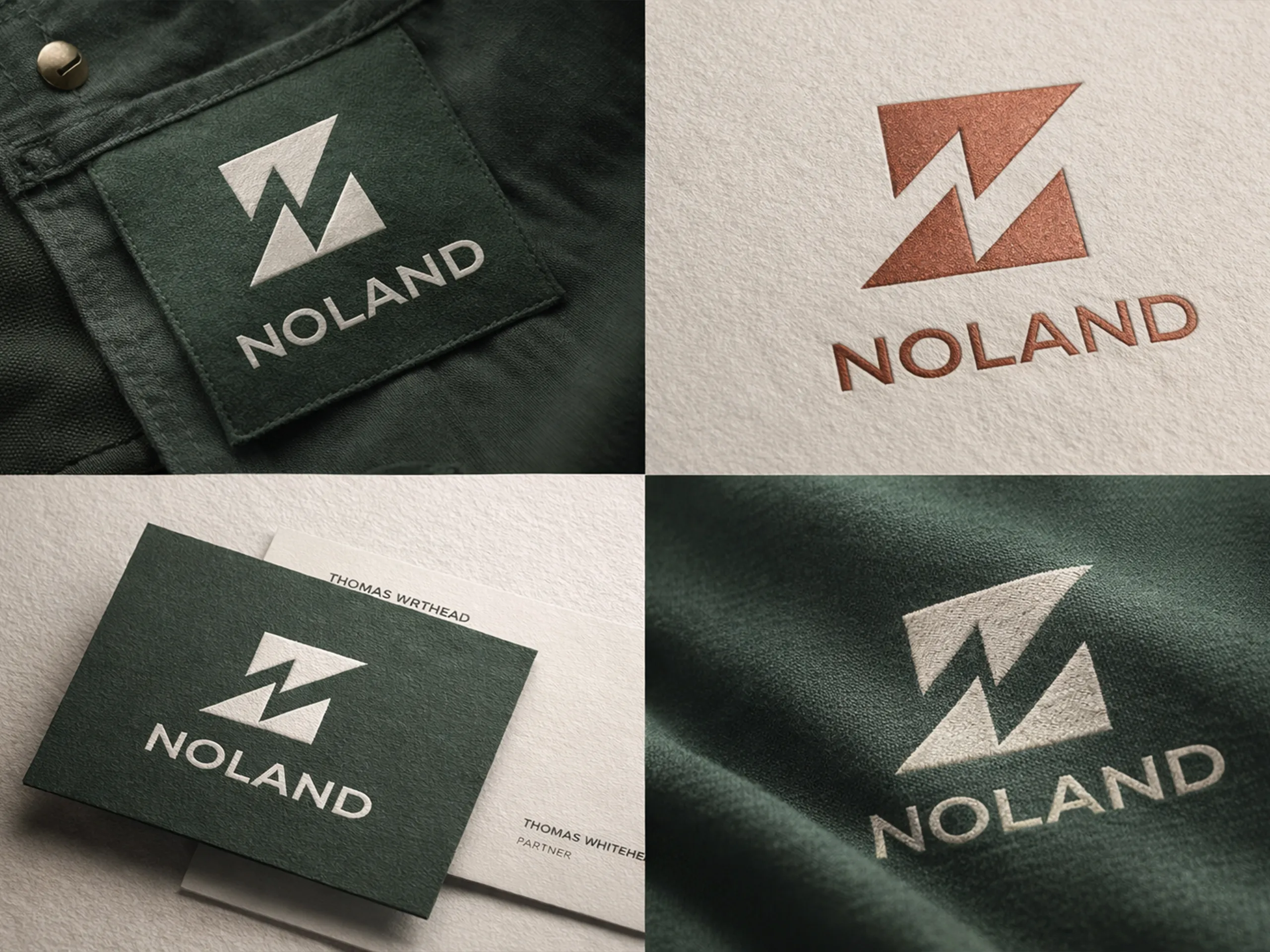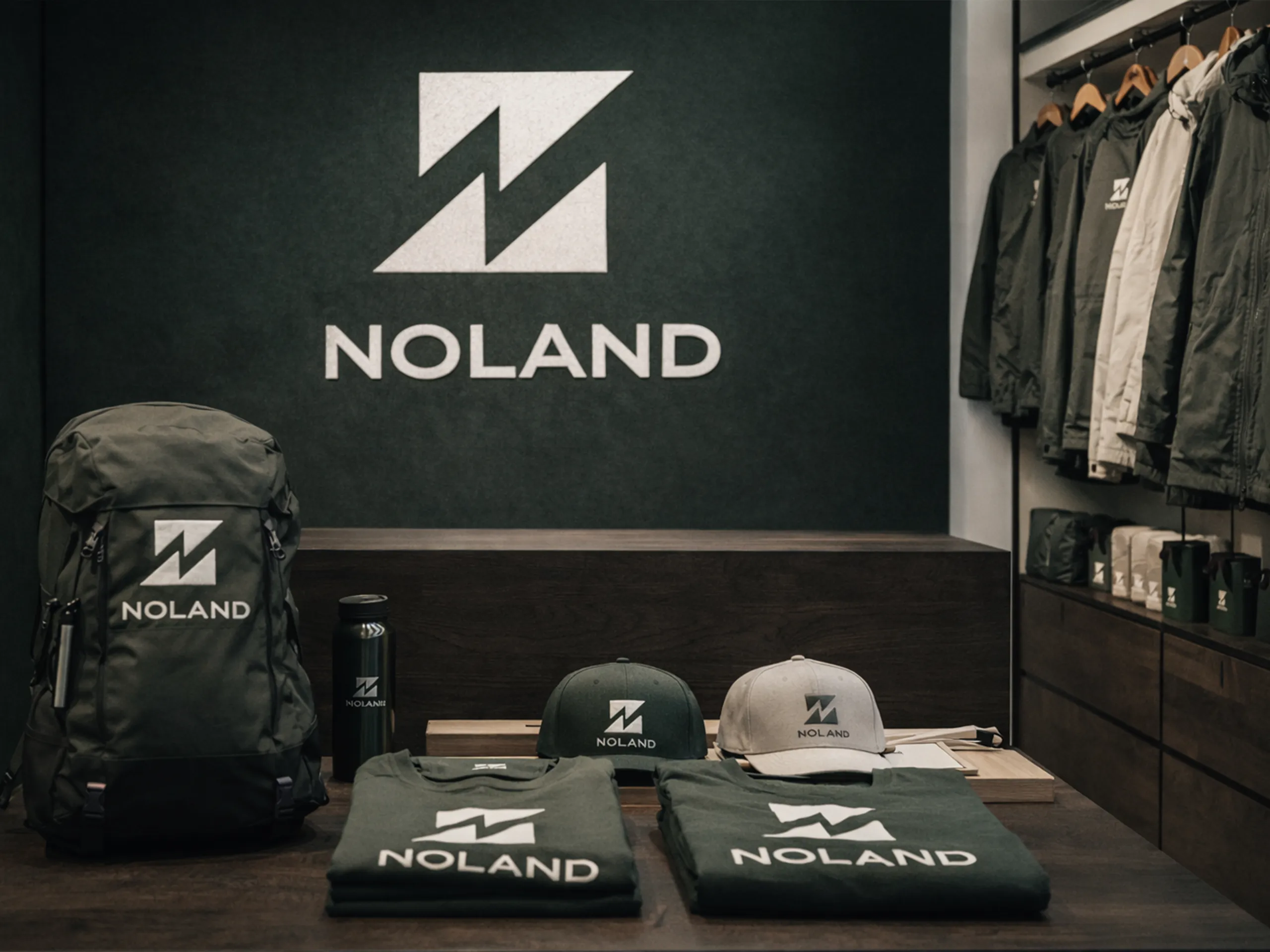NOLAND is a premium outdoor and performance apparel brand built for modern explorers who demand durability, functionality, and refined minimal aesthetics. The brand identity was developed around the concept of strength, elevation, and precision, expressed through a geometric mountain-inspired symbol with a bold negative-space “N” at its core. The visual direction embraces the “Deep Forest & Stone” palette, reinforcing a grounded, natural, and resilient brand personality. From logo architecture to apparel mockups and high-end brand presentation, the project establishes NOLAND as a sophisticated yet rugged outdoor brand positioned for global expansion.
